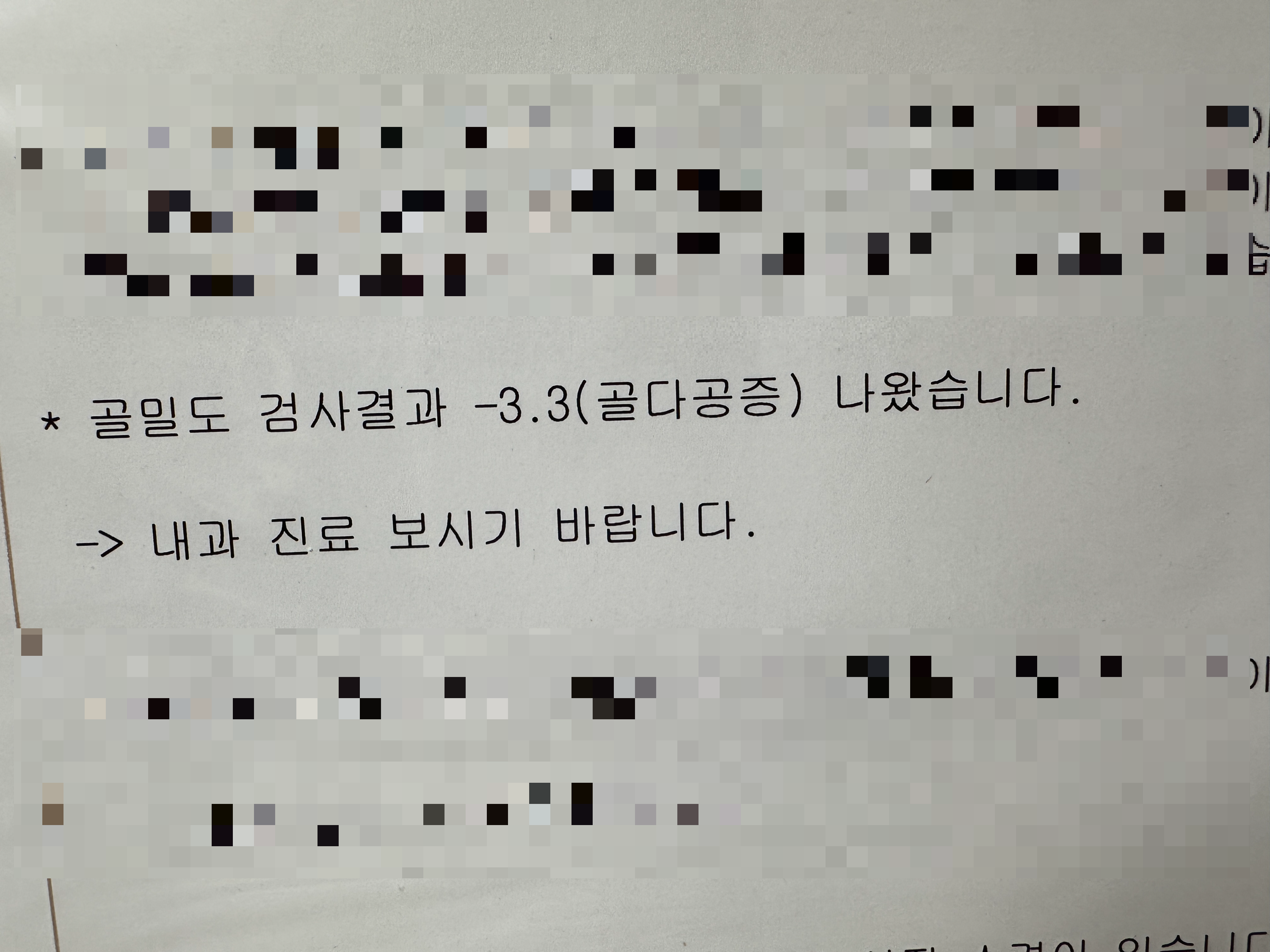 골밀도검사(기계로 찍는 것)도 다시 해보자고 하셨어요.
