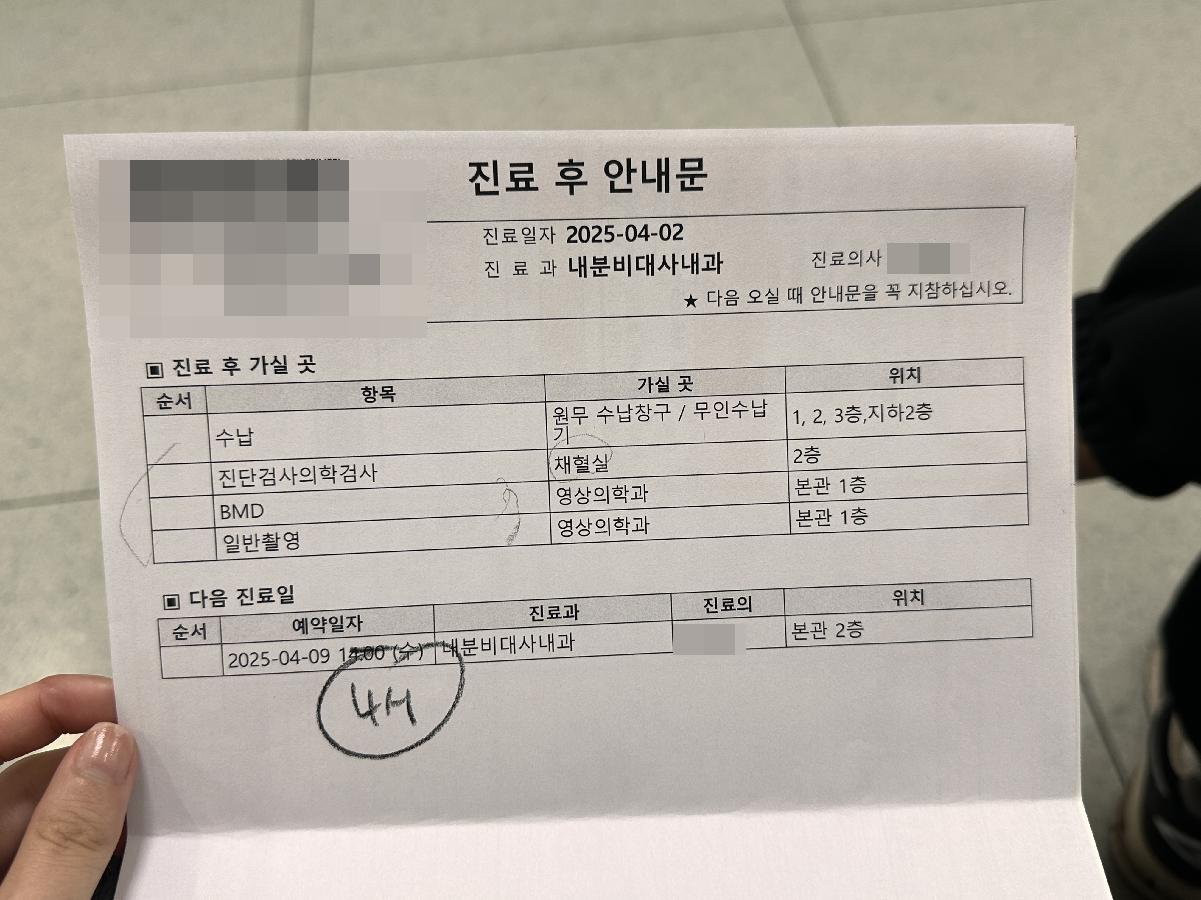 내분비내과 의사 선생님이 결과지를 보고 설명해주시는데